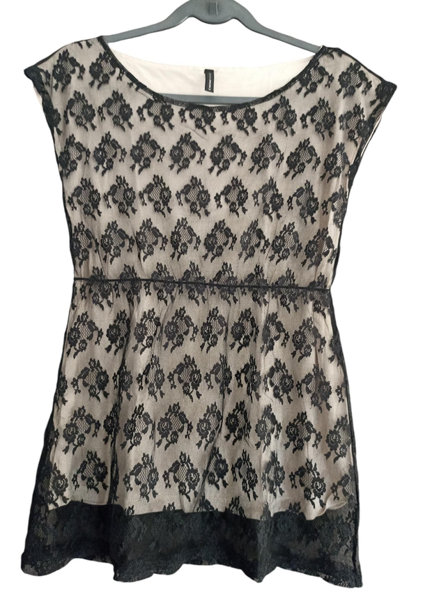 Haut beige à dentelle noire Naf Naf taille M